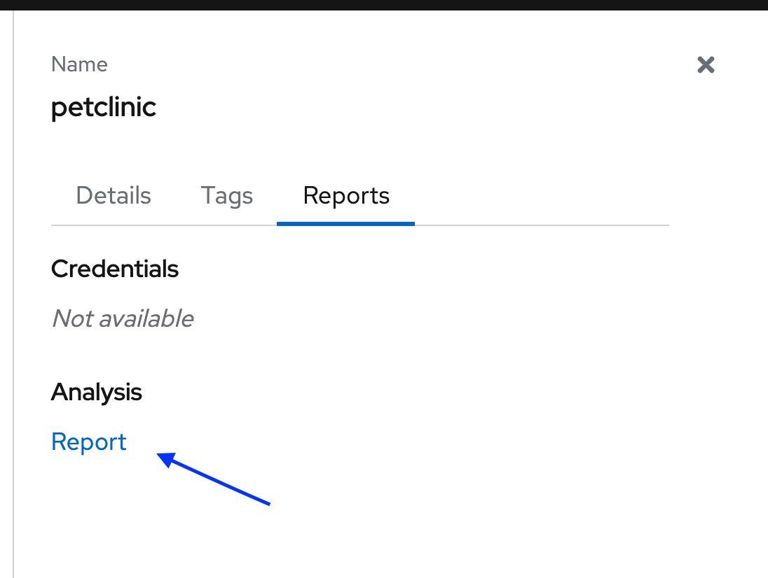 a. Create an app entry called petclinic in the Analysis tab of the tackle ui.